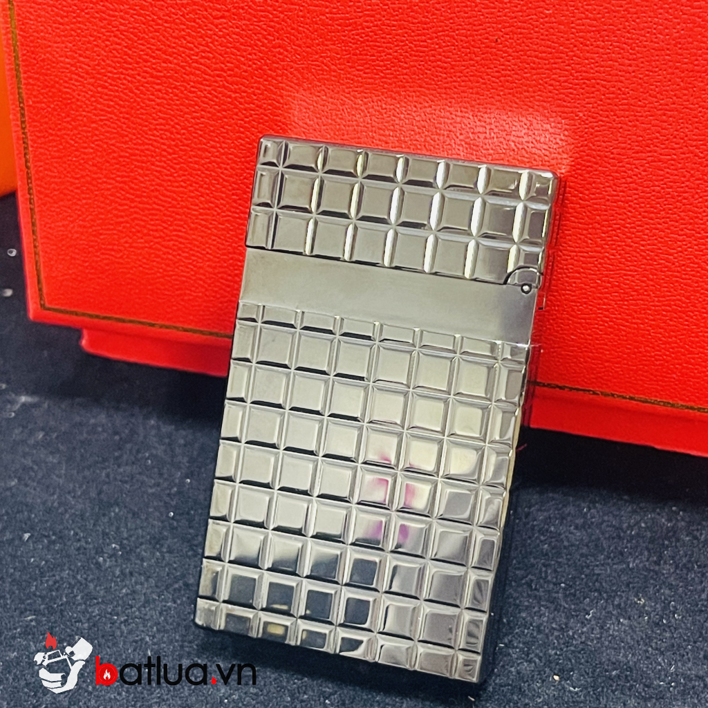 Toàn thân bật lửa được hoàn thiện bằng kim loại cao cấp phủ đen ánh kim, dập vân ô vuông guilloché sắc nét, đều tay. Các mảng vân tạo hiệu ứng phản quang nhẹ khi gặp ánh sáng, giúp bật lửa trông rất sang trong hình chụp, nhưng khi nhìn trực tiếp vẫn giữ được sắc đen trầm – lịch – nam tính.