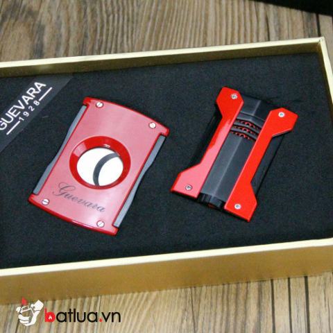 Bộ Sản Phẩm Guevara Bật Lửa Và Dao Cắt Sang Trọng Màu Đỏ
