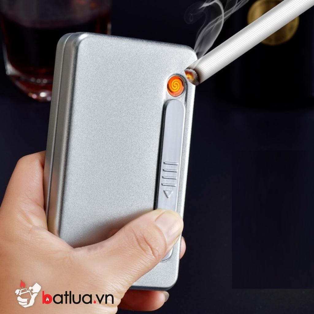 Hộp đựng thuốc lá dài kiêm bật lửa điện